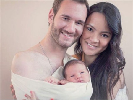 | Họ đã có một con trai, bé Kiyoshi James Vujicic sinh ngày 13/2/2013, hoàn toàn lành lặn, nặng 3,9kg. |