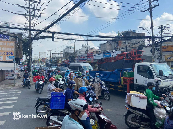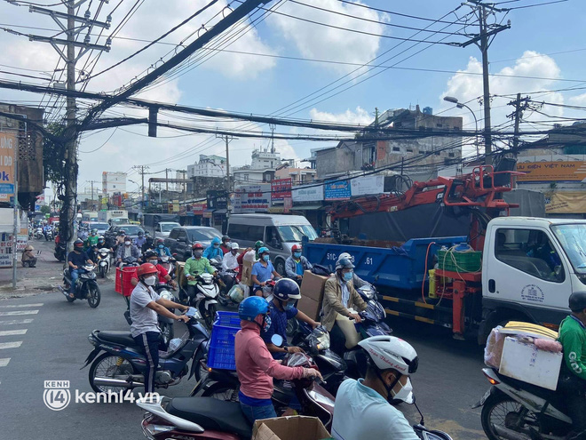 Sáng nay, ngày 21/8, người dân ra đường đông đúc để đi mua thực phẩm, có thời điểm kẹt xe tại các ngã tư