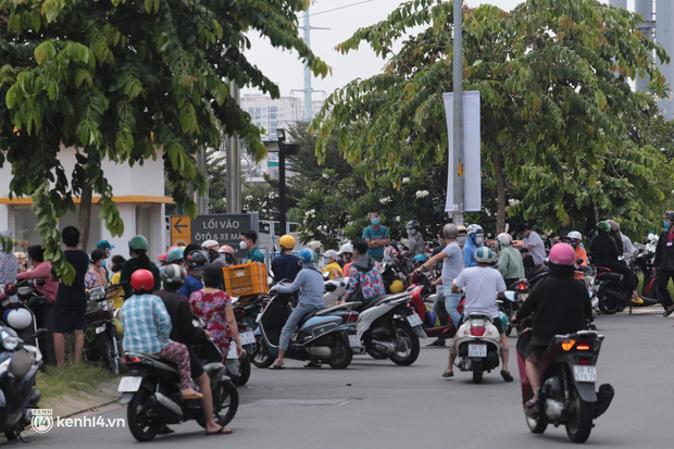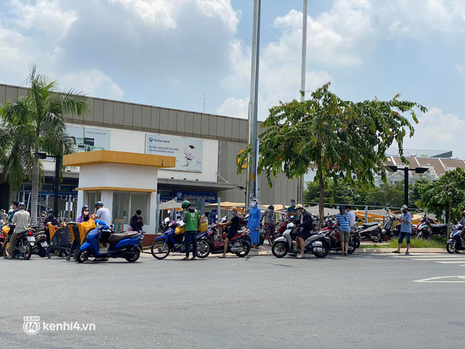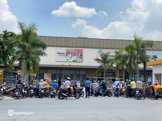 Do bên trong siêu thị thực thiện giãn cách khi mua sắm, chỉ nhận số lượng khách nhất định nên bên ngoài càng ùn ứ.