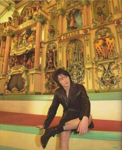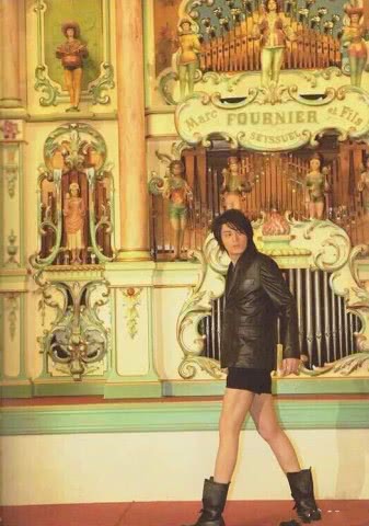 Anh diện quần đùi bó sát và ủng, thậm chí còn có cả áo da.