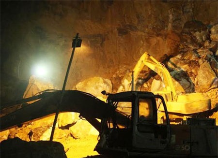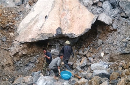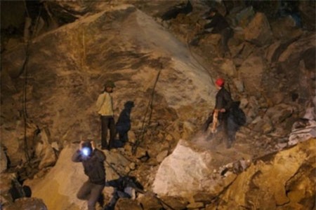 Những tảng đá nặng hàng tấn đổ sập xuống khiến công tác tìm kiếm gặp rất nhiều khó khăn |