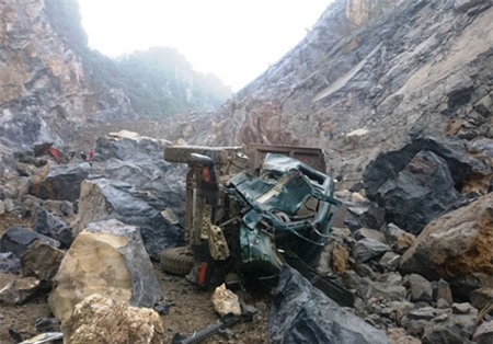 Chiếc xe ô tô bẹp nát, biến dạng sau vụ sập mỏ đá |
