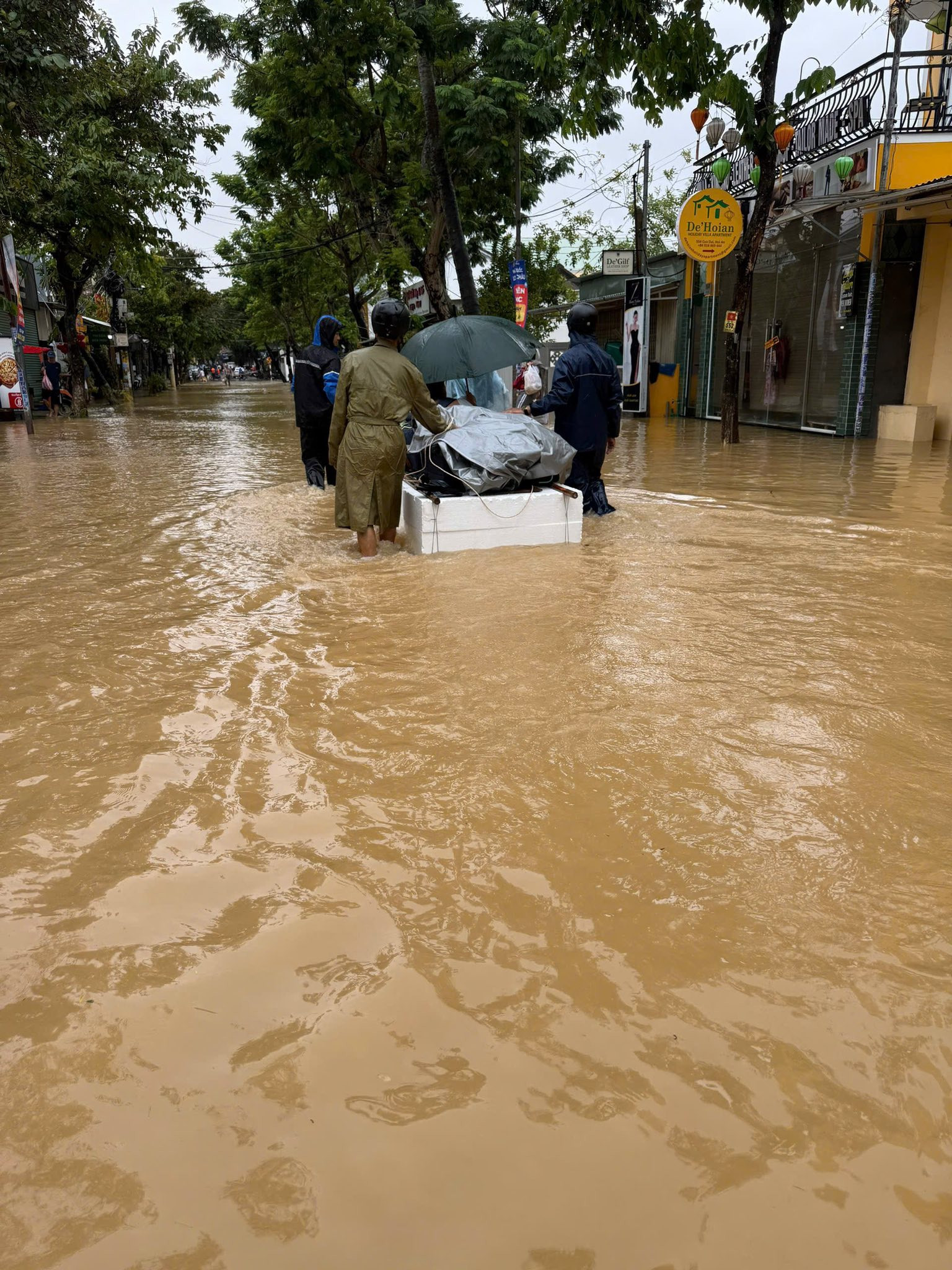 Hoa hậu Tiểu Vy - một người con của Quảng Nam (cũ) - bày tỏ sự xót xa khi nhìn ảnh quê mình ngập trong nước: "Từ nơi xa gửi chút thương đến Hội An quê mình. Mong mưa sớm tạnh, người dân mình an toàn và bình yên trở lại. Thương lắm bà con miền Trung!".