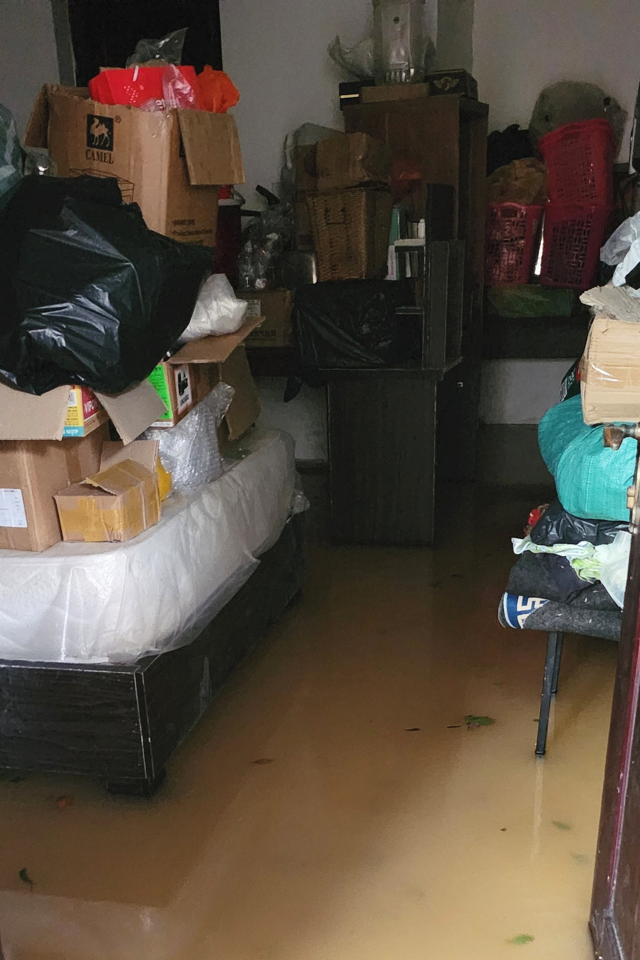 Không ngờ sau một đêm, nước ngập lênh láng ngôi nhà, thậm chí cao hơn 60cm so với năm 2020. Vợ chồng nữ danh ca vất vả đưa chú heo nặng 309kg đến nơi cao hơn, 14 con chó lên lầu, sau đó tranh thủ kê cao 5 cái tủ lạnh và 1 cái ghế mát-xa.
