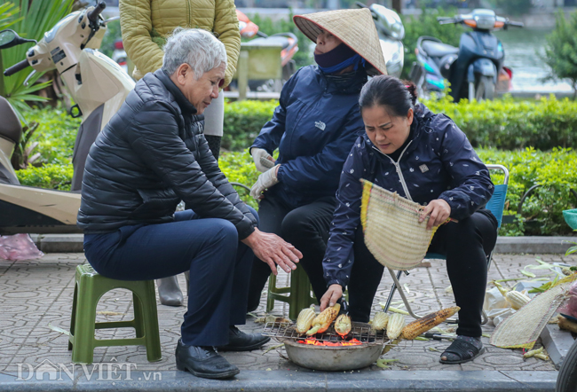 Những quán ngô nướng ven đường trở nên đắt hàng. Giá rét khiến các thực khách dễ dàng bị hấp dẫn bởi mùi ngô nướng thơm phức, tìm đến mua một, hai bắp ngô ăn cho ấm lòng,
