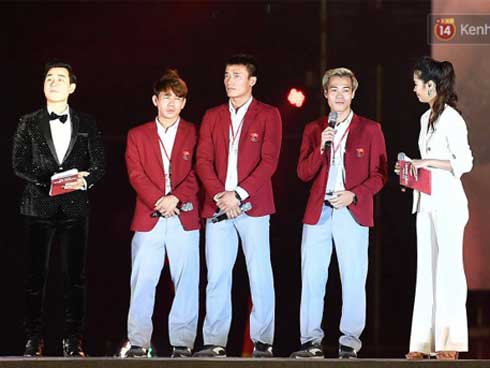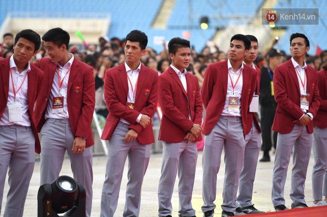 Ngay sau đó, các cầu thủ tiến xuống phía dưới khán đài để dự lễ vinh danh trang trọng và hoành tráng.