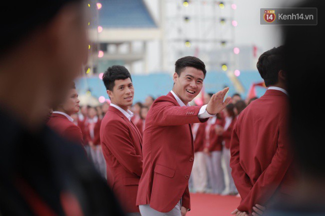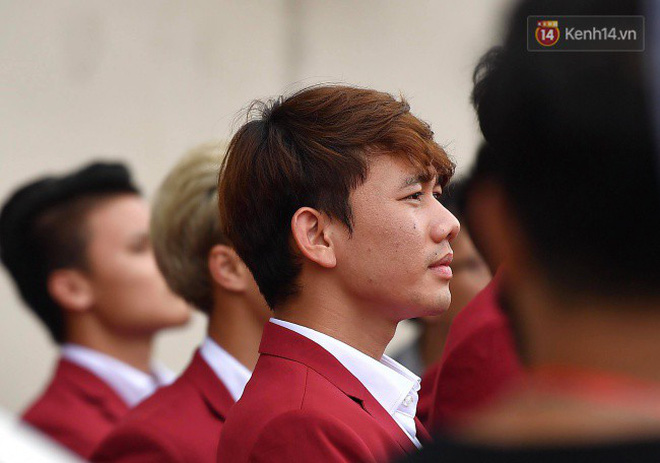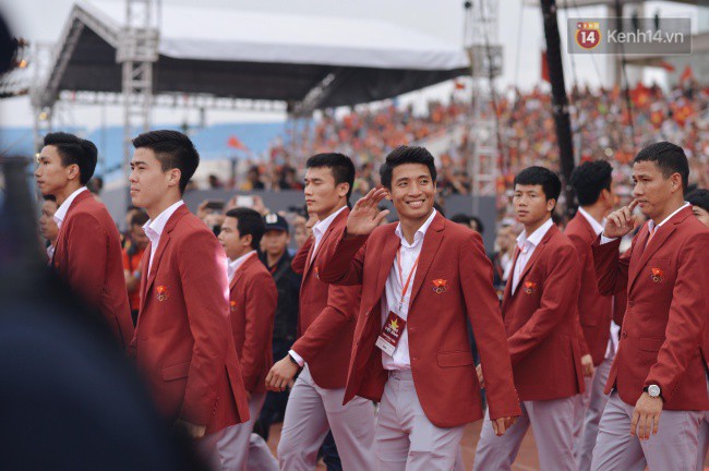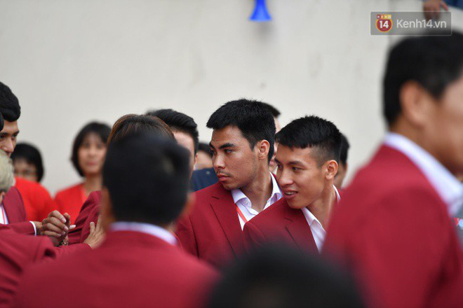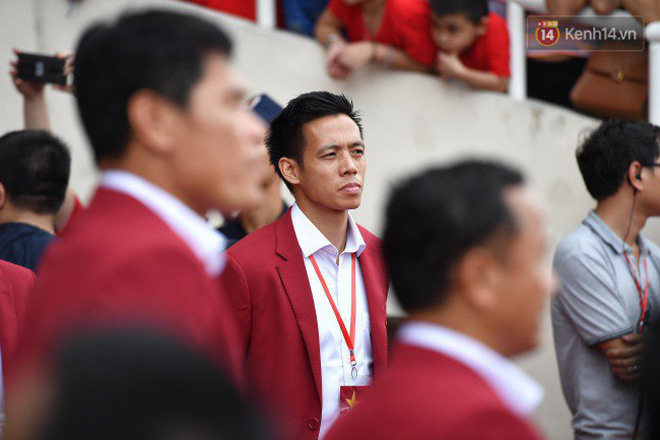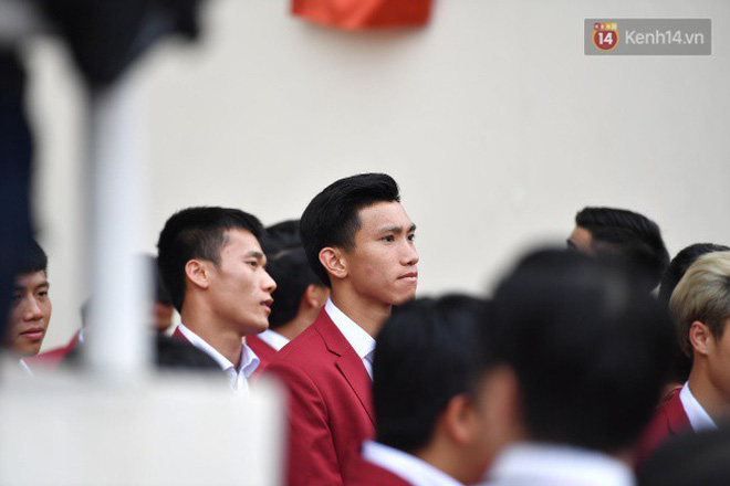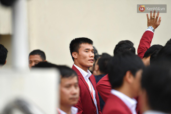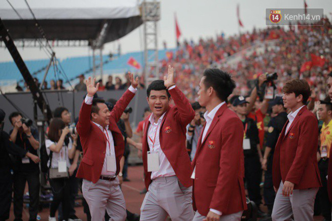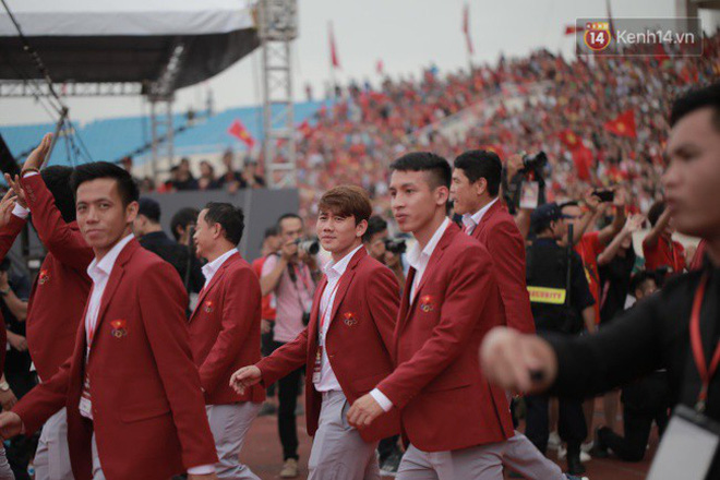 HLV Park Hang Seo cùng các cầu thủ tiến về phía khán đài để bắt đầu buổi lễ vinh danh