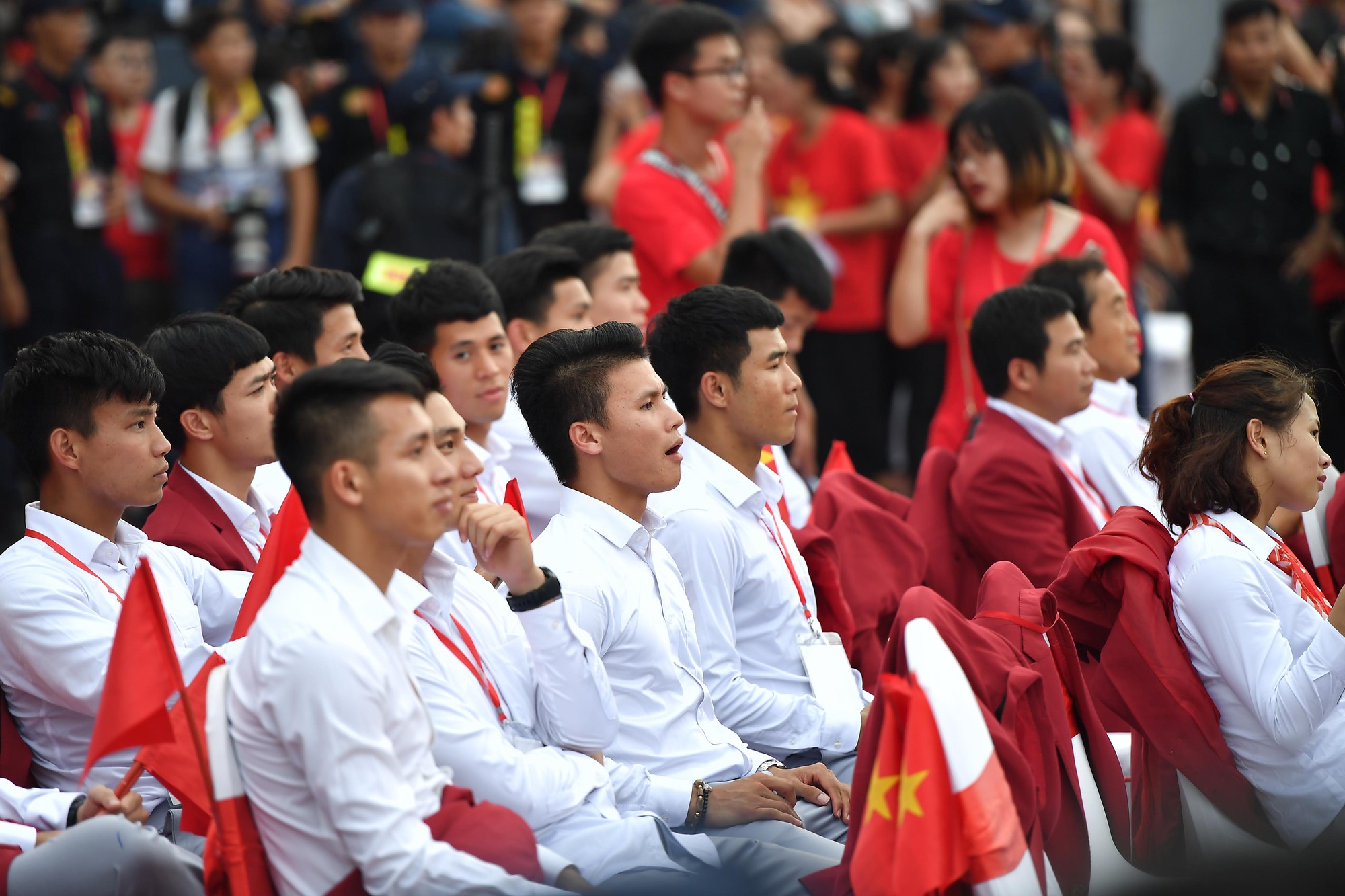 Các cầu thủ Olympic Việt Nam bước lên bục vinh danh