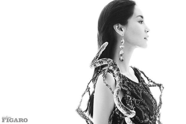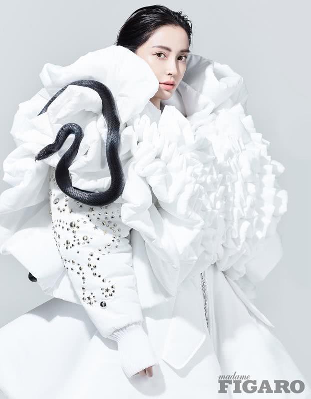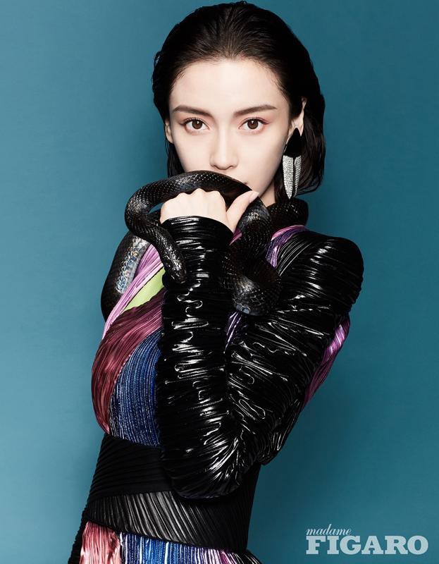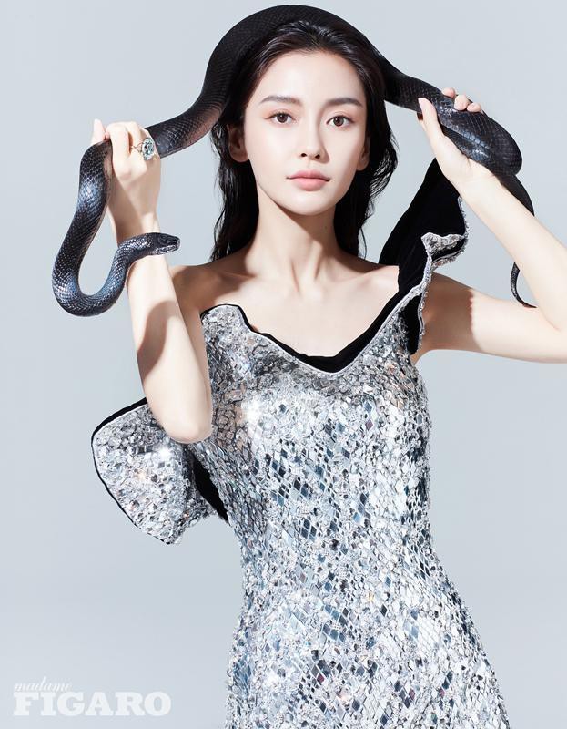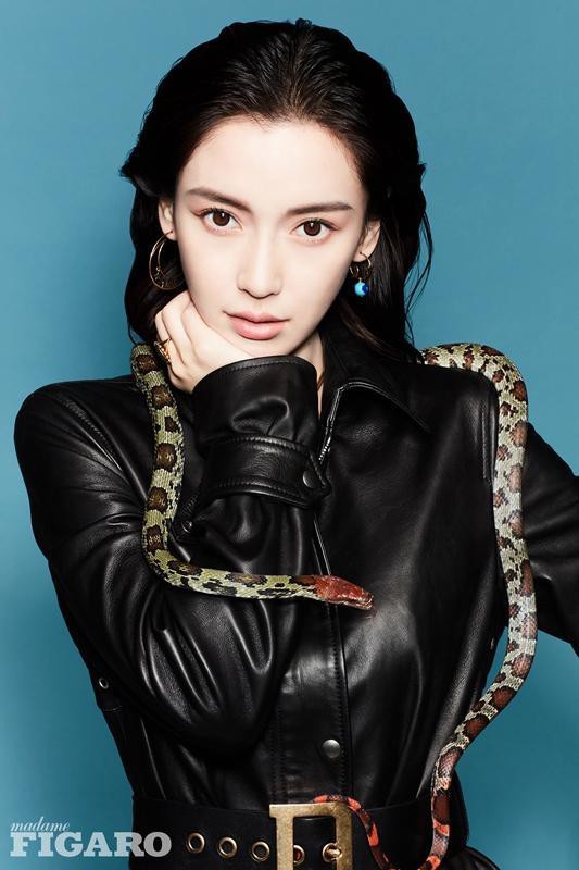 Angelababy là gương mặt trang bìa trên tạp chí Figaro, số tháng 9/2018. Nữ diễn viên 29 tuổi vốn là một người mẫu ảnh chuyên nghiệp nhưng đây là lần đầu tiên cô thử sức với việc chụp hình với rắn.