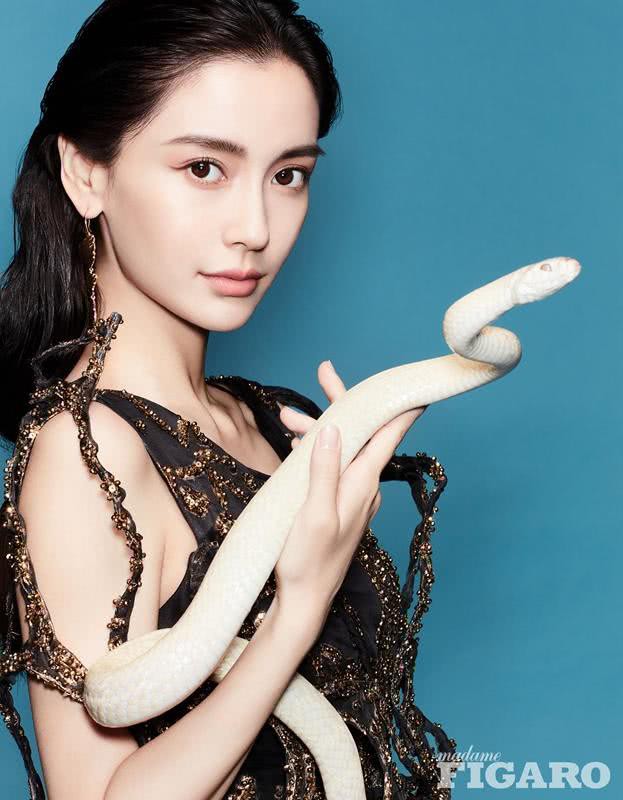 Để thay đổi phong cách, nữ diễn viên Angelababy đã chấp nhận chụp ảnh thời trang với rắn cho tạp chí Madame Figaro, số tháng 9/2018. Cô thừa nhận, đây là buổi chụp hình kinh sợ và mạo hiểm nhất trong sự nghiệp của cô.