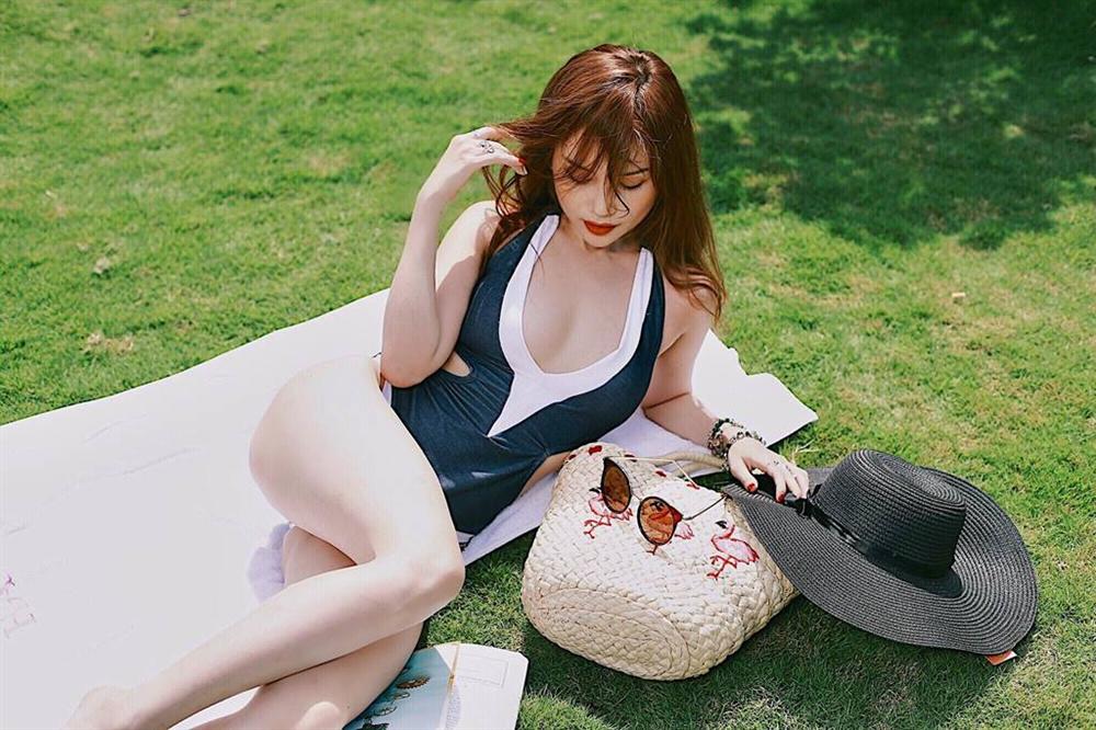 Trong những bộ bikini khoét sâu, ca sĩ, VJ Sĩ Thanh khoe vòng 3 gợi cảm cùng với hình xăm ở vị trí gợi cảm "đốt mắt" fan.