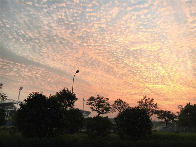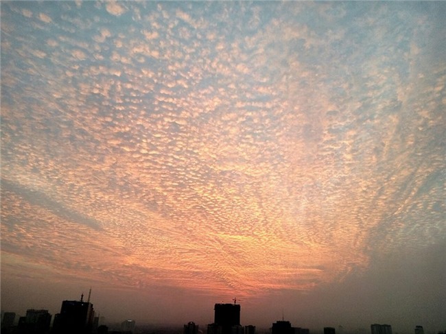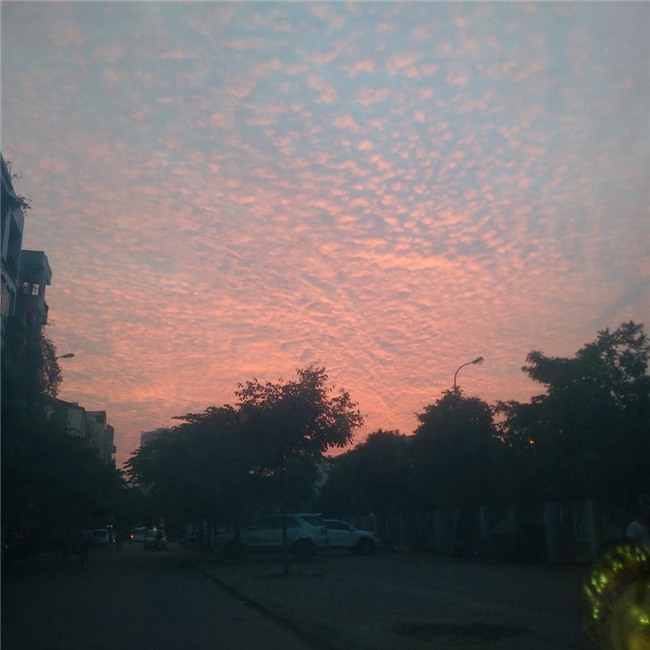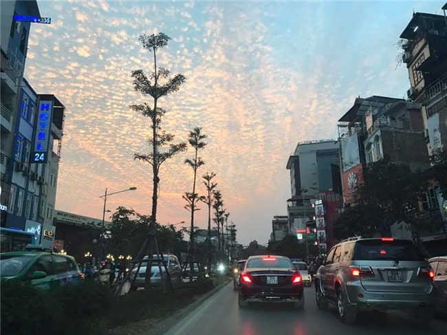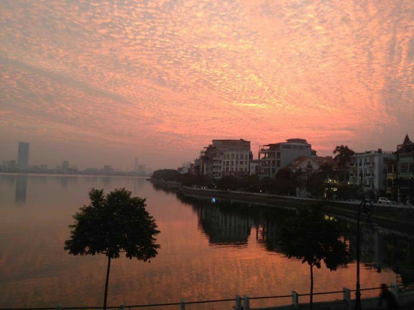 Hà Nội đã vào đông nhưng bầu trời lúc chiều tối qua có lẽ đó là khoảnh khắc đẹp nhất trong năm. Trông nó rực rỡ như một bàn phắn pháo hoa tráng lệ. Rất nhiều người không thể bỏ qua cơ hội lưu lại cảnh tượng này.