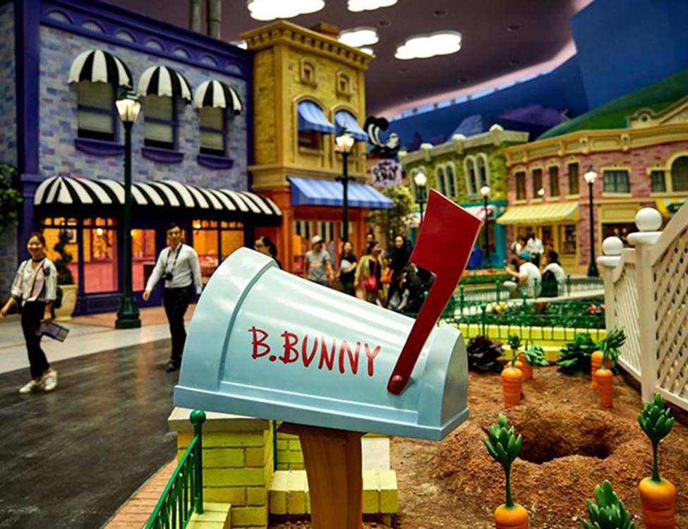 Từ thời điểm bạn đi qua lối vào là bức tượng chú thỏ Bugs Bunny khổng lồ bằng vàng đang gặm vào một củ cà rốt.