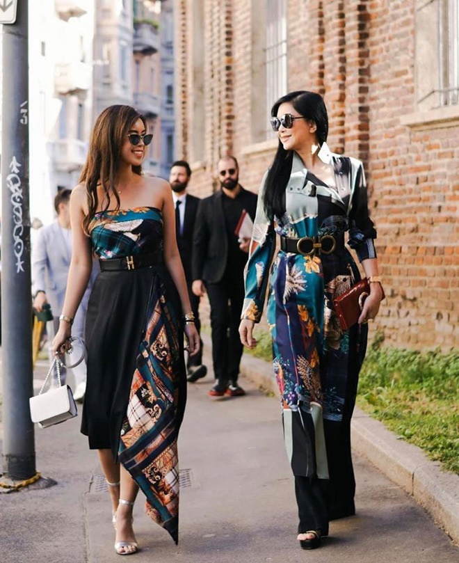 Trong ảnh là hai mẹ con Thuỷ Tiên - Tiên Nguyễn cùng tham dự "Milan Fashion Week". Cách mix đồ của người đẹp U50 ấn tượng chẳng thua kém cô con gái đang độ tuổi đôi mươi của mình.