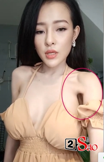 Ngoại hình thật của Ngân 98 là thế này đây: vai và xương ức gầy tong teo còn vòng 1 đã được tu sửa nên lủng lẳng, xập xệ trông thấy.