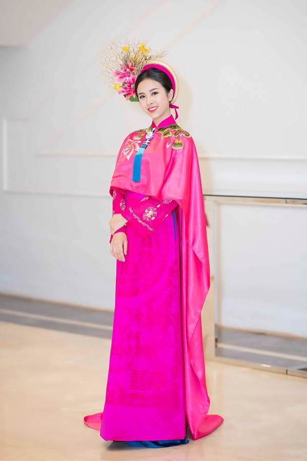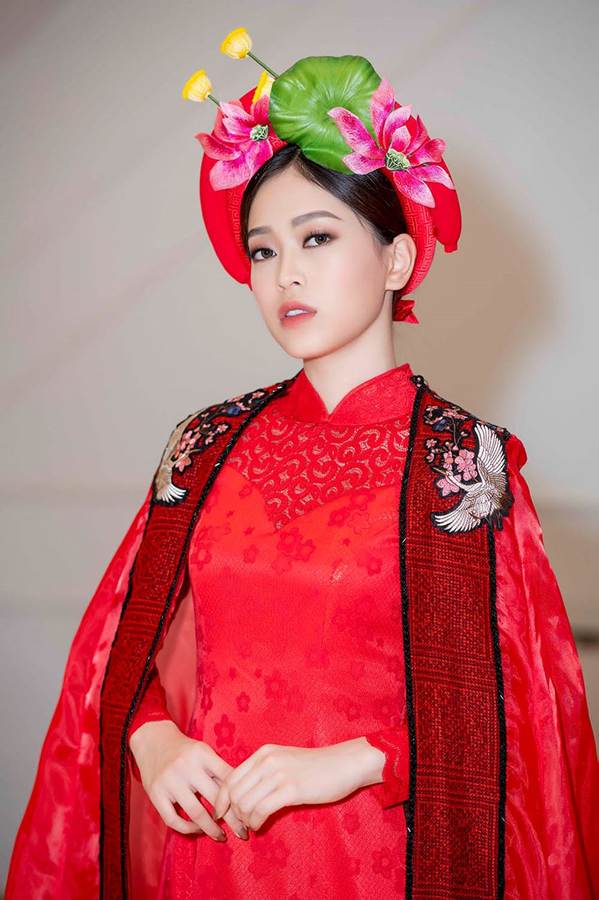 Á hậu Phương Nga nổi bật với áo dài đỏ.