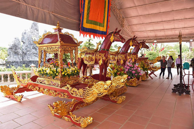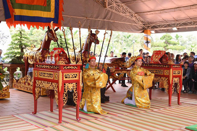 Phía bên trong sân, mọi thứ được chuẩn bị tươm tất, chuẩn bị cho lễ dâng hương.