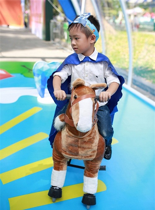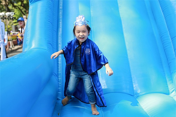 Lúc đầu do trời nắng gắt nên bé Cadie tỏ ra lạ lẫm với các trò chơi…