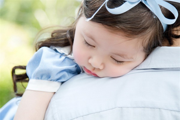 Cadie Mộc Trà thiếp đi trên vai của một người thân.
