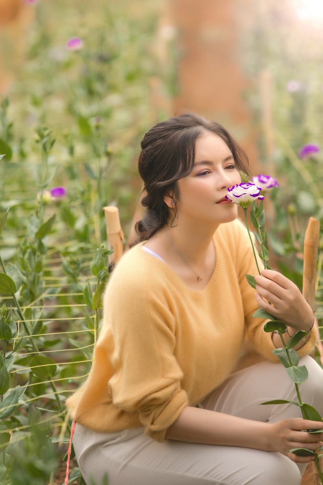 Lý Nhã Kỳ vừa có mặt tại Đà Lạt và cô tranh thủ đi thu hoạch hoa ở chính cơ ngơi mình đang sở hữu tại thành phố này.