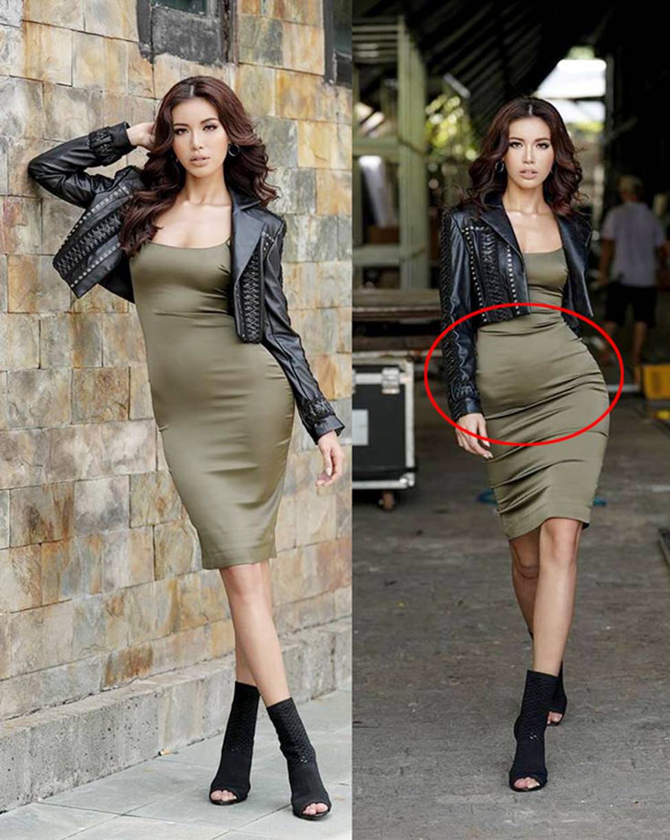 Còn thiết kế này lại khiến vòng eo của Minh Tú lớn lên trông thấy.