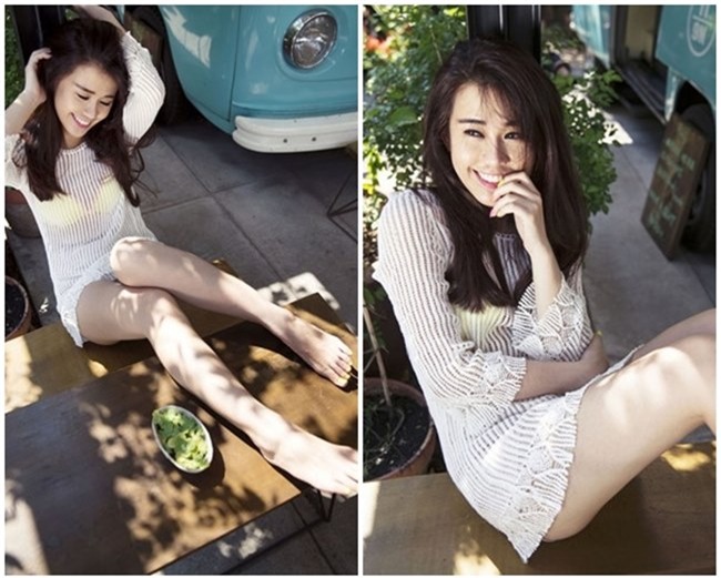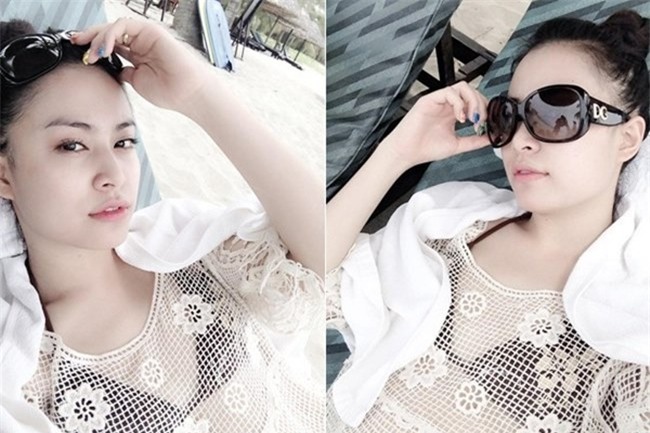 Cô thường xuyên mặc áo lưới đi biển với nhiều cách tạo dáng khác nhau, gây mê người nhìn.
