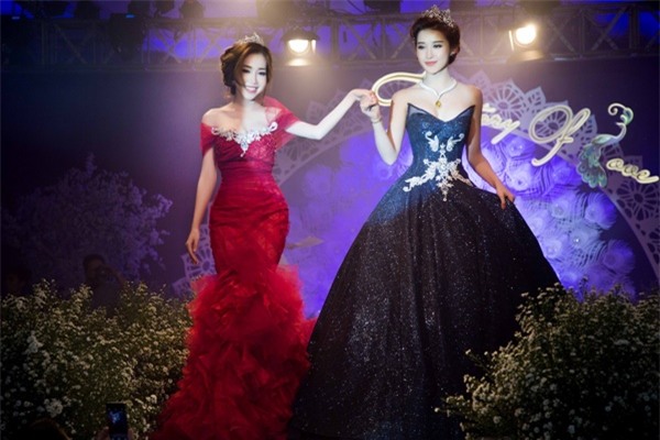 Dù thấp hơn Á Hậu Huyền Mi cả một cái đầu nhưng Elly Trần vẫn không hề bị lu mờ bởi thần thái tự tin và số đo hình thể chuẩn.