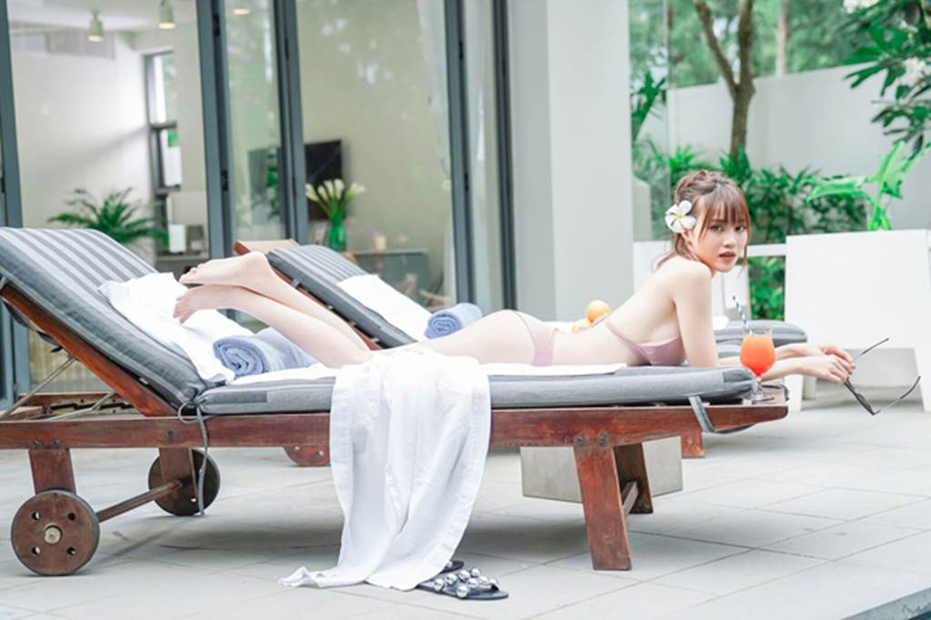 Lần đầu tiên diện bikini lên màn ảnh, Ninh Dương Lan Ngọc khiến người hâm mộ trầm trồ vì vóc dáng mảnh mai, làn da mịn màng.