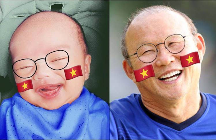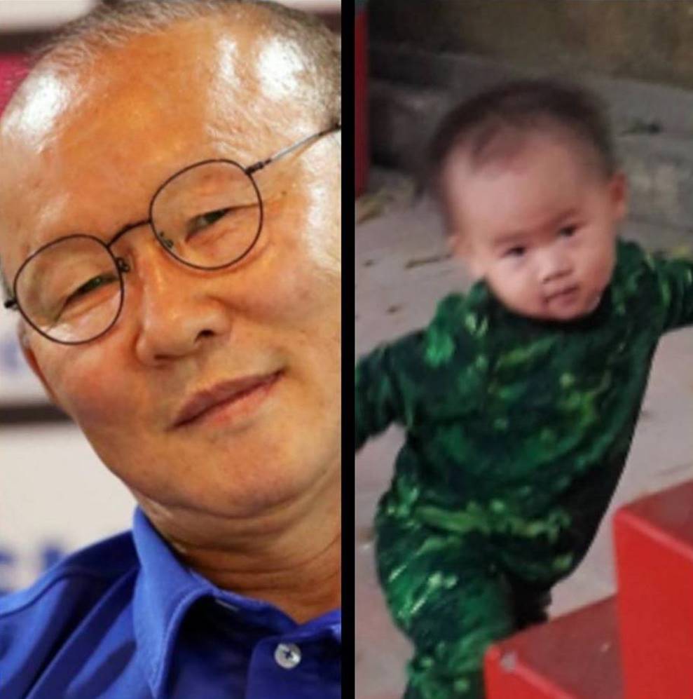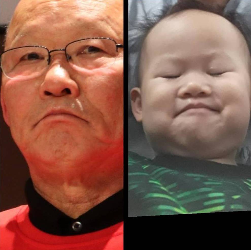 HLV Park Hang Seo mang gương mặt có nhiều nét trẻ thơ, vì vậy rất nhiều em bé Việt trông giống ông.