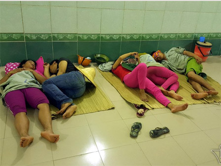 Giấc ngủ trưa quý giá giúp đôi vợ chồng công nhân có sức làm việc ngày nắng nóng |
