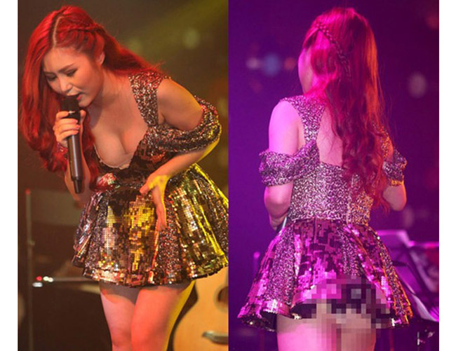 Hoặc có lần cô đi hát, mặc trang phục xuyên thấu lộ liễu nội y bên trong.