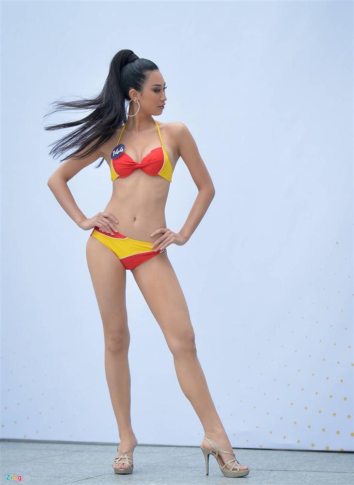 Dàn thí sinh khoe hình thể với bikini. Một số cô gái lộ eo kém thon gọn, săn chắc khi di chuyển. Đêm chung kết của cuộc thi năm nay diễn ra vào 7/12 cũng tại Nha Trang.
