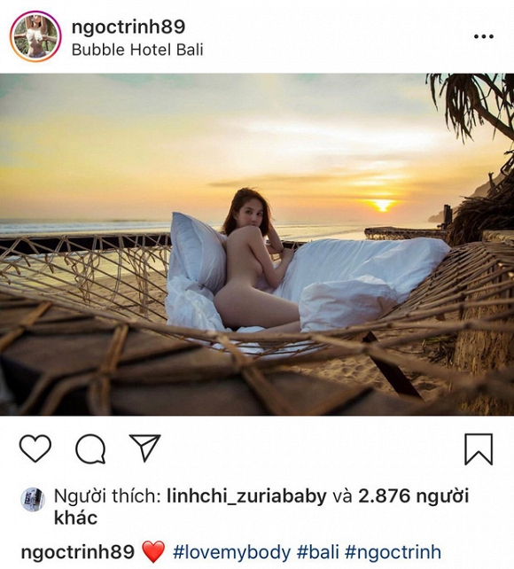 Không chỉ vậy, cô nàng còn tung ảnh nude 100% táo bạo trong chuyến đi lần này