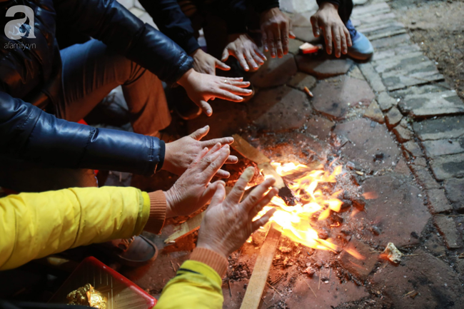 Quần áo dày, bịt tay chưa đủ. Rất nhiều người vì công việc phải làm đêm hôm, và một đống lửa nhỏ thế này sẽ giúp xua tan đi giá rét.