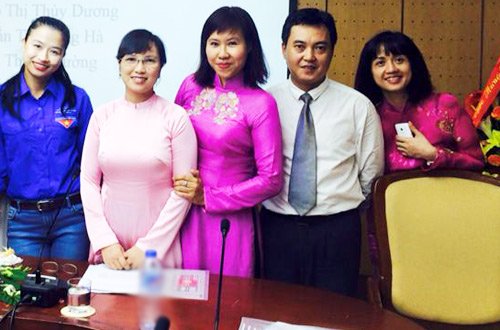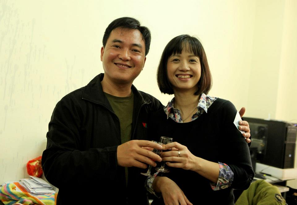 MC Tùng Chi cười rạng rỡ bên đồng nghiệp thân thiết  Lưu Minh Vũ.