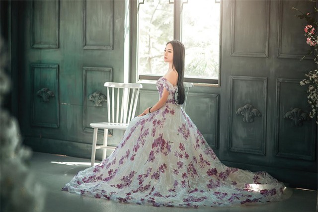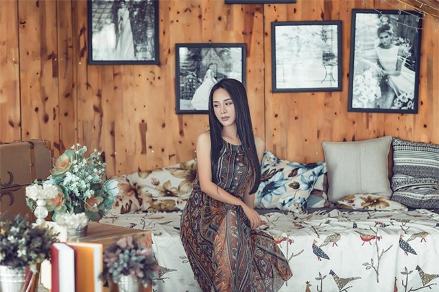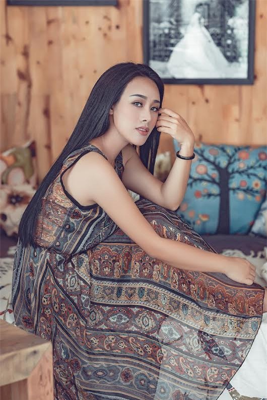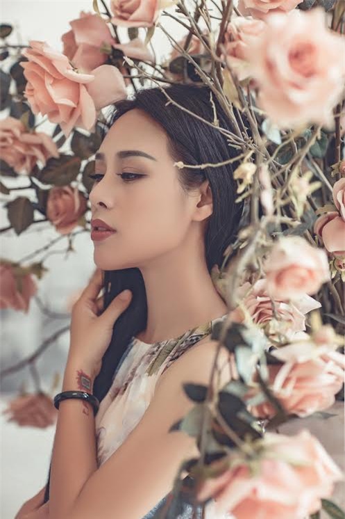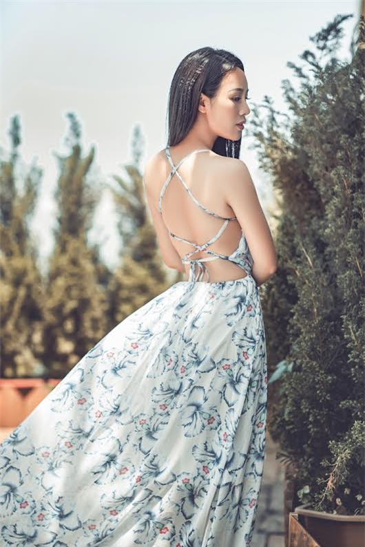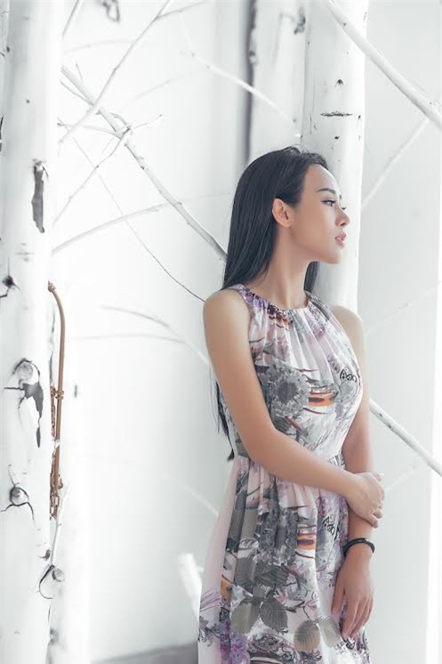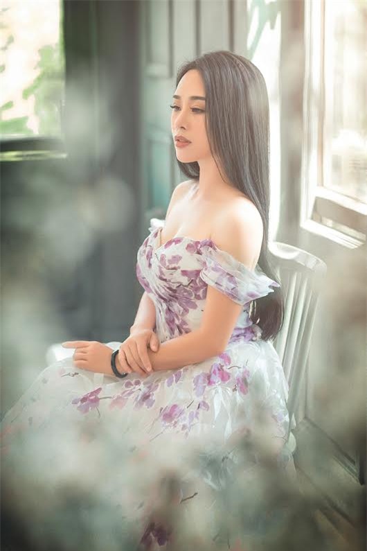 Trong bộ hình thời trang mới, Hoa Trần thực sự hút mắt bằng vẻ nữ tính, mong manh với những bộ maxi có hoạ tiết nhẹ nhàng gợi cảm, để lộ phần ngực đầy đặn hoặc lưng trần quyến rũ. Mới đây bà mẹ 3 con đã chuyển hướng sang làm ca sĩ, trở thành đồng nghiệp của chồng.