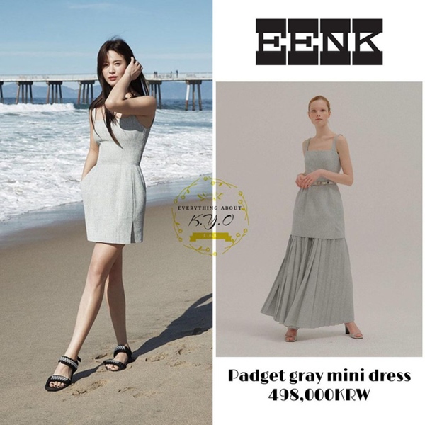 Diện mẫu váy liền của From The Beige nhưng Song Hye Kyo đã nâng phần thắt lưng lên gần chân ngực giúp vóc dáng được cải thiện đáng kể