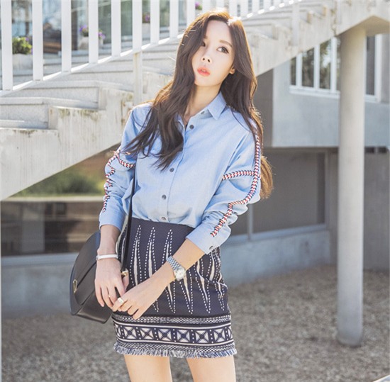 Với tính chất phóng khoáng của áo sơ mi cách điệu, quý cô sang chảnh có thể kết hợp dáng áo này với nhiều trang phục khác nhau như chân váy denim, chân váy thô có đường khuy to, chân váy may lệch vạt gợi cảm, quần jean rách hay quần short đều đẹp.