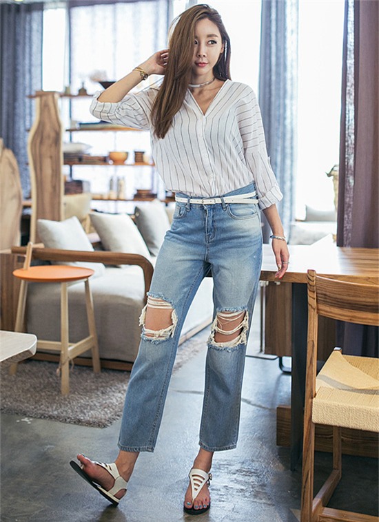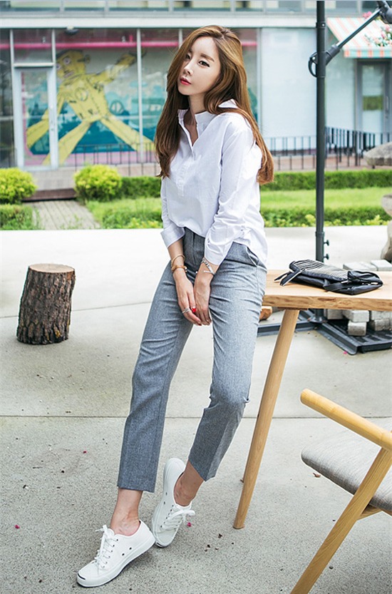 Khi diện áo sơ mi cách điệu bên cạnh chọn giày, sandal cao gót tôn dáng thì boot cổ ngắn cá tính, giày slipper thoải mái hay giày thể thao khỏe khoắn là những phụ kiện được lựa chọn nhiều.
