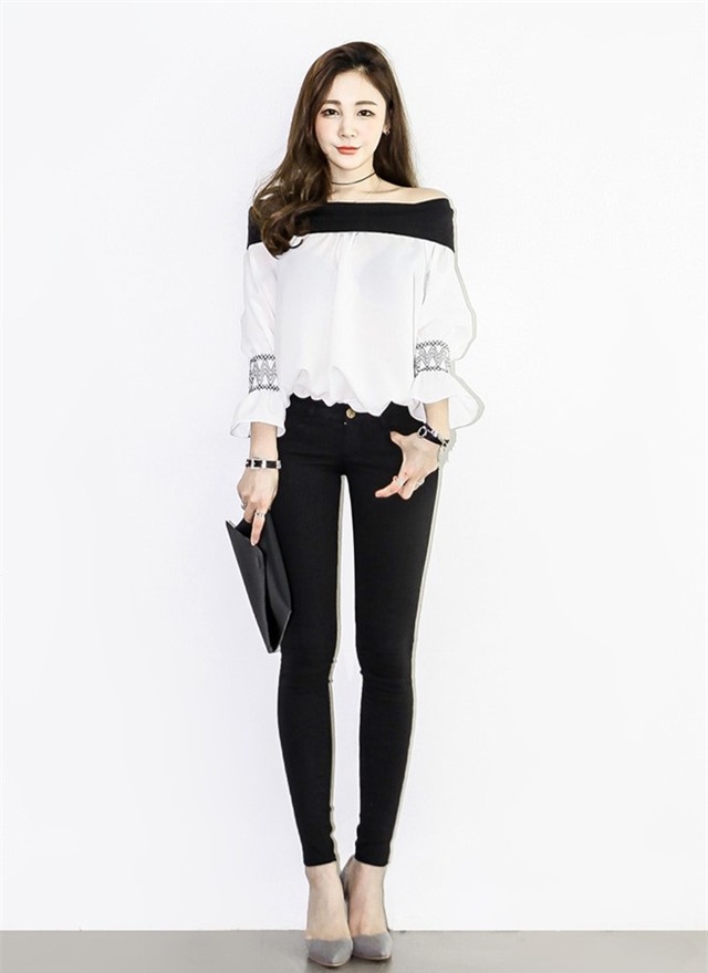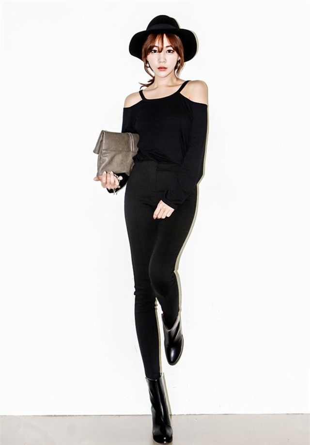 Với cô gái cá tính thì một chút khoe vai với tông màu đen sẽ giúp bộ trang phục không hề nhàm chán.