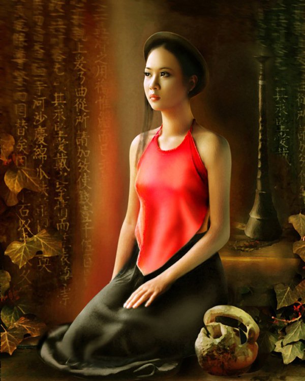 Qua góc máy, hình ảnh người phụ nữ xưa hiện lên đẹp hiền dịu mà không hề phô khi mặc áo yếm.
