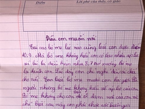 Cậu bé lớp 4 viết thư phản đối áp lực điểm 10 khiến cha mẹ lặng người