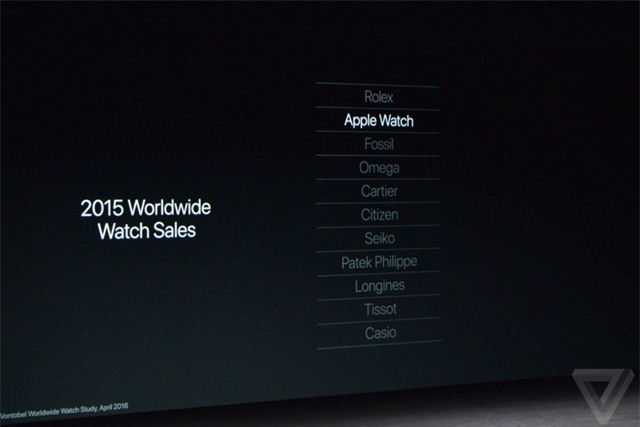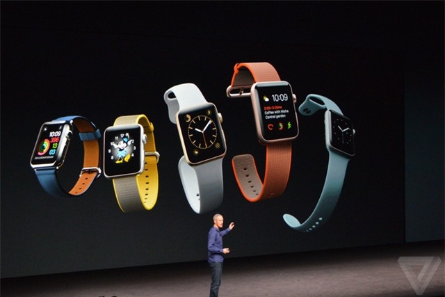 Cuối cùng, thiết bị mới đầu tiên của sự kiện cũng đã được Apple hé lộ, đó là chiếc đồng hồ thông minh Apple Watch thế hệ mới. Sản phẩm sở hữu thiết kế bên ngoài không mấy khác biệt so với phiên bản trước đây. Đặc biệt sản phẩm sẽ có tên gọi: Apple Watch Series 2.