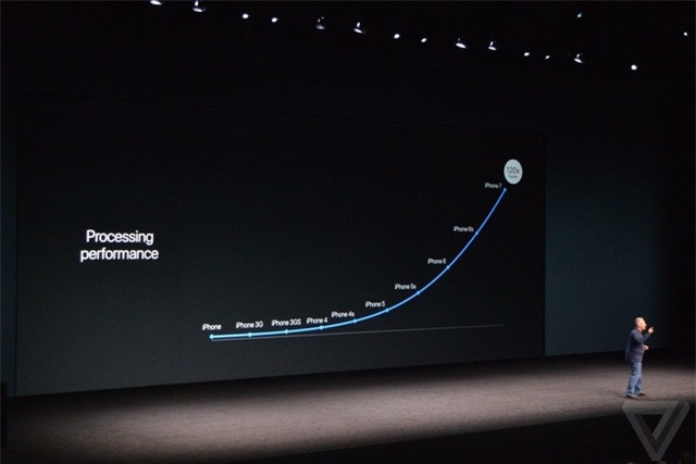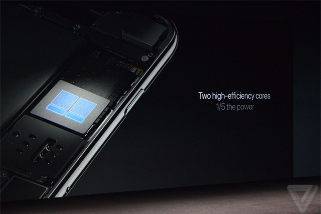 Quay trở lại bộ đôi iPhone mới của Apple. Sản phẩm sẽ được trang bị vi xử lý A10 Fusion hoàn toàn mới, với 4 lõi xử lý 64-bit. Apple khẳng định thế hệ vi xử lý này nhanh gấp 40% so với vi xử lý A9 trang bị trên iPhone 6S, gấp 2 lần thế hệ vi xử lý A8 trên iPhone 6 và nhanh gấp 120 lần so với thế hệ iPhone đầu tiên.