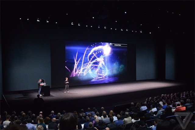 CEO Tim Cook xuất hiện trên sân khấu sự kiện của Apple, nhưng khác với những lần trước, Tim Cook không xuất hiện trực tiếp mà thông qua một đoạn video được phát trên màn hình chính.