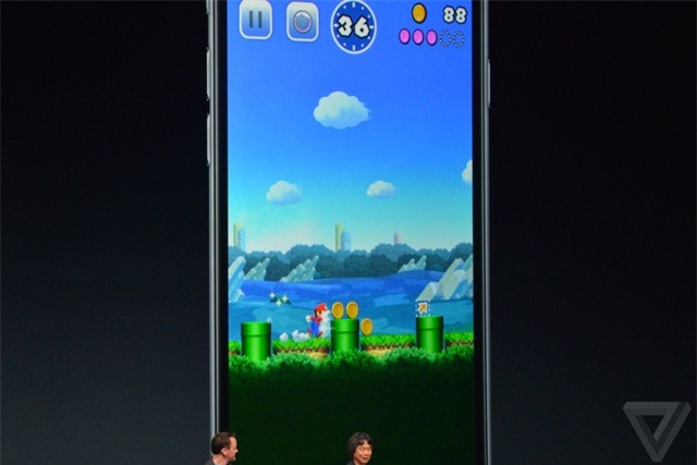 “Game vẫn là danh mục lớn và phổ biến nhất trên kho ứng dụng, nhưng vẫn còn thiếu một ai đó...”, Tim Cook “úp mở”. Và điều bất ngờ đã được Tim Cook hé lộ, đó là “Mario”, nhân vật game nổi tiếng hàng đầu thế giới, sẽ được xuất hiện trên iOS.
