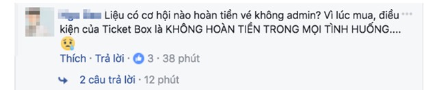 Một số người còn bày tỏ sự lo lắng trên mạng xã hội rằng sẽ không được hoàn tiền vì điều kiện mua vé ở Ticket Box có ghi là "không hoàn vé trong mọi tình huống".