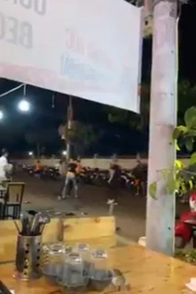 Theo đó, một nhóm thanh niên khoảng 6-7 người lao vào nhau đánh đấm, vật lộn gây náo loạn. Có người còn dùng tay ghim chặt đầu đối phương và ghì sát xuống đất. Người thì ném chai bia từ ngoài vào trong quán nhậu.