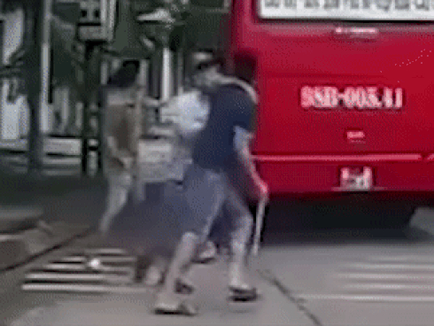 Một người đàn ông bặm trợn lôi kéo phụ xe xuống để nói chuyện. Nạn nhân chống cự liền bị người đàn ông kia liên tiếp đánh vào người.