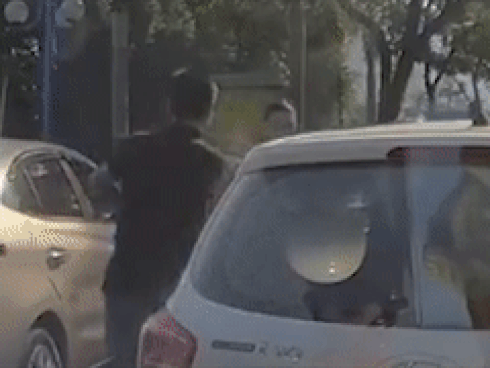 Sau va chạm giao thông, 2 người đàn ông dừng xe giữa đường tranh cãi bất chấp các phương tiện qua lại đông đúc. Tài xế ôtô đã rút gậy 3 khúc đánh xe ôm công nghệ.